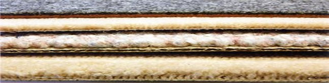 Una parte superficiale, il "velour", che, a seconda della lavorazione si presenta in maniere diverse: velluto, velluto corto (shag), riccio ondulato, feltro agugliato, fioccato, agugliato verticale.
