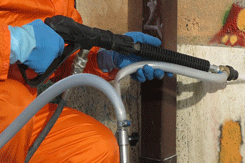 Questo sistema viene eseguito con l'ausilio di un mezzo polifunzionale completamente indipendente per quanto riguarda l'approvvigionamento dell'acqua e della corrente elettrica, funzione questa che lo rende particolarmente adatto per i lavori out-
