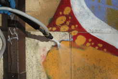 La speciale pistola sparando acqua a pressione (regolabile tra i 40 e i 130 bar) permette tramite l'utilizzo dell'effetto venturi di aspirare la quantità di carbonato necessaria a rimuovere qualsiasi tipo di graffito o sporco.