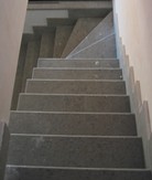 La stessa scalinata dopo l'applicazione del trattamento da noi proposto. Si può notare come si evidente il contrasto maculato, caratteristica propria di questo tipo di materiale.